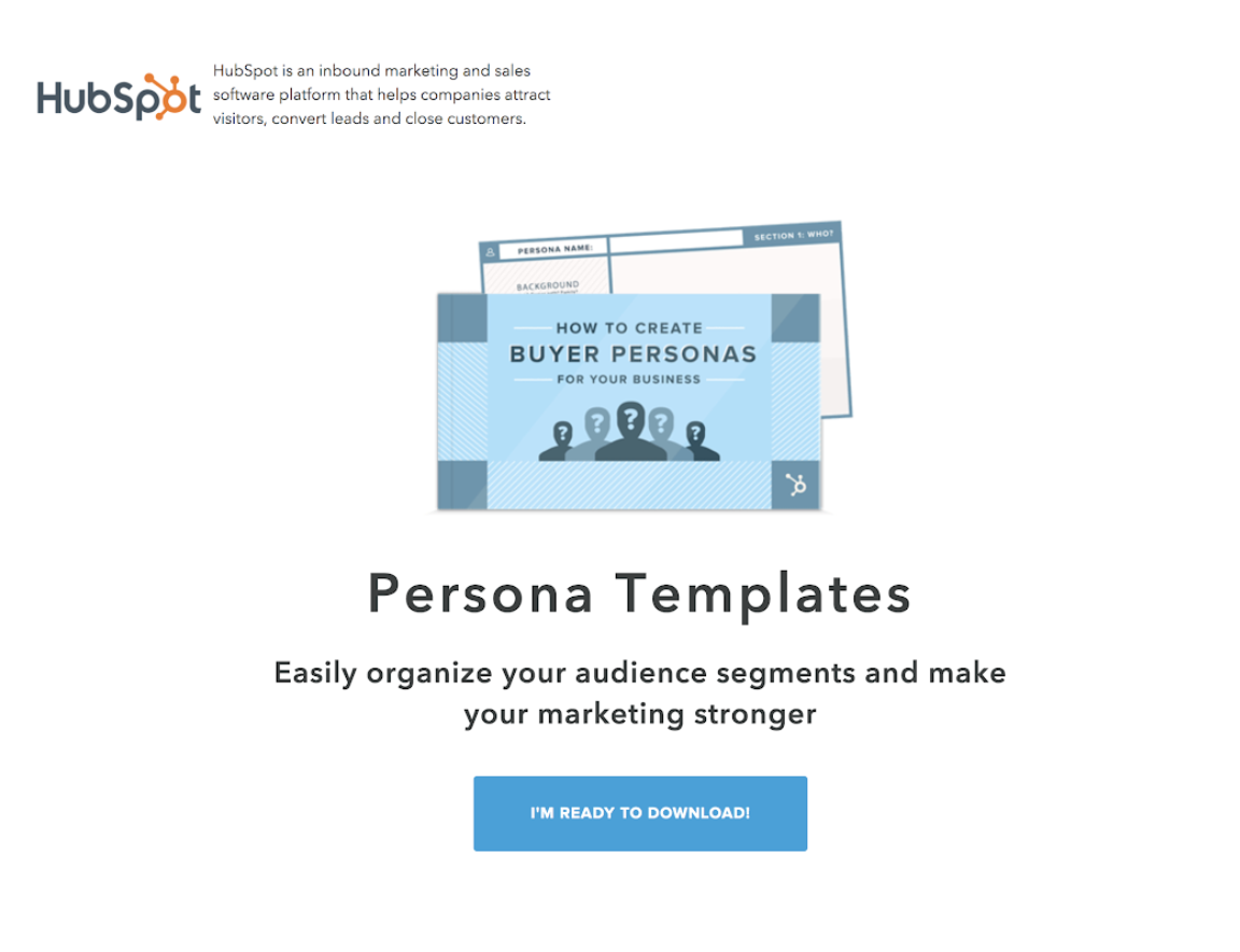 Em vez disso, considere oferecer o seu melhor conteúdo em troca do endereço de e-mail, usando páginas de destino personalizadas que mostrem claramente o conteúdo de qualidade que você está oferecendo para aumentar as inscrições. Um ótimo exemplo prático disso são os templates de persona prontos para download do HubSpot.