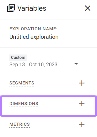 Click into "Dimensions" within the "Variables" of your exploration.
